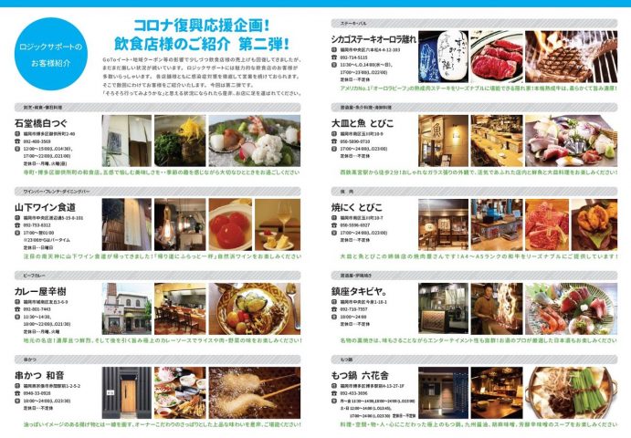 また、コロナ復興応援企画として飲食店の紹介を掲載させていただきました。