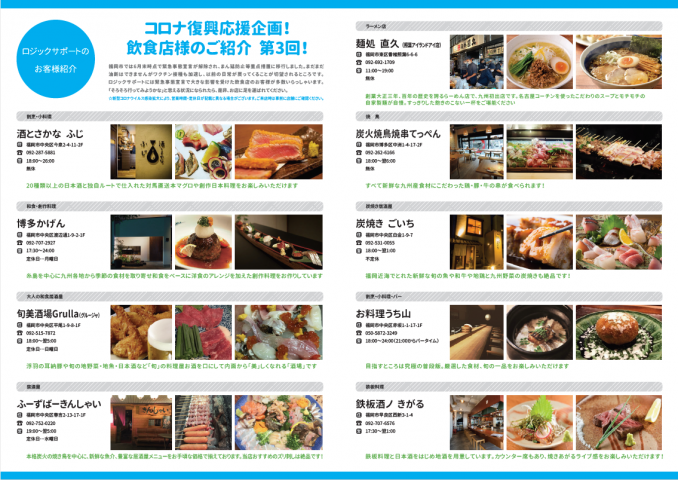 今回も好評のコロナ復興応援企画として飲食店様のご紹介シリーズ 第三弾を掲載しております。